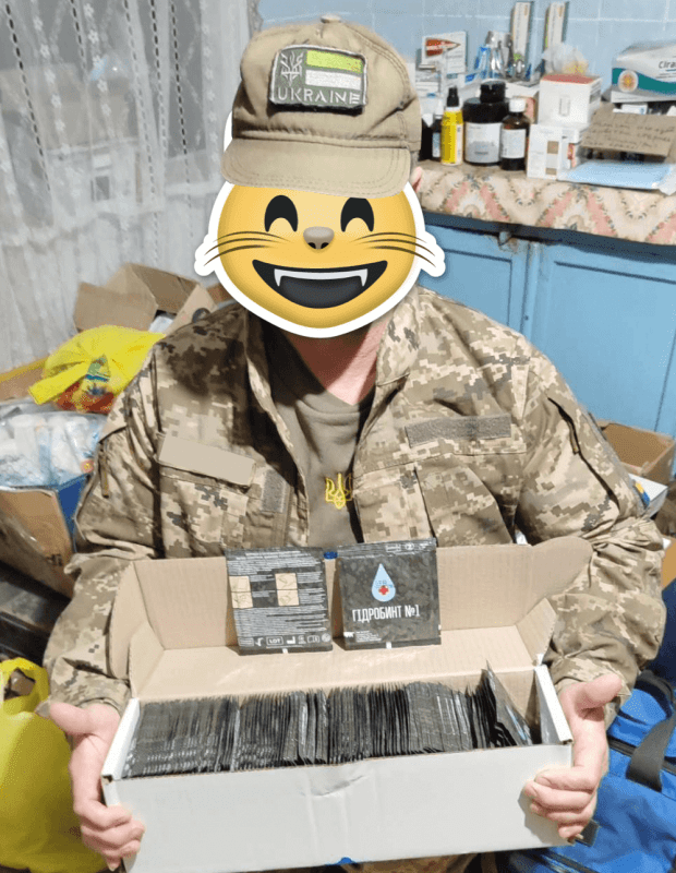 У грудні 2025 року ми передали 20000 повʼязок «Гідробинт №1» для медичного центру Національної гвардії України і лікування військових за сприяння Посольства Французької Республіки в Україні. Допомога була надана в межах міжнародної співпраці за участі технічного радника НГУ від Національної жандармерії Франції полковника Жана-Франсуа Лаффорга.