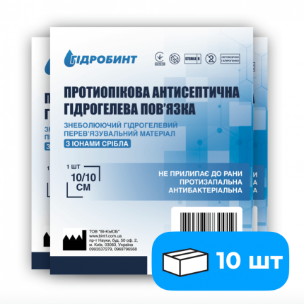 Пов’язка антисептична, одноразова, стерильна “Гідробинт № 1» 10х10 см, пакування 10 шт
