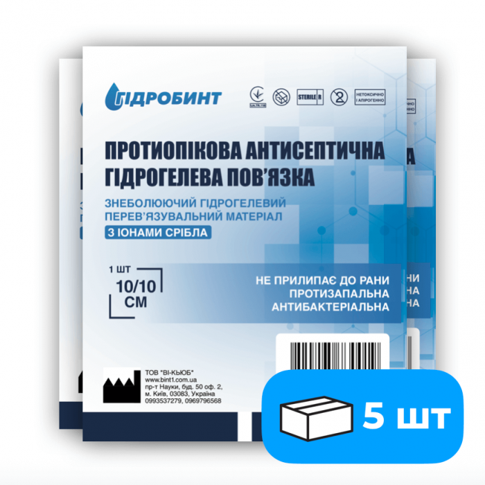 Пов’язка антисептична, одноразова, стерильна “Гідробинт № 1» 10х10 см, пакування 5 шт