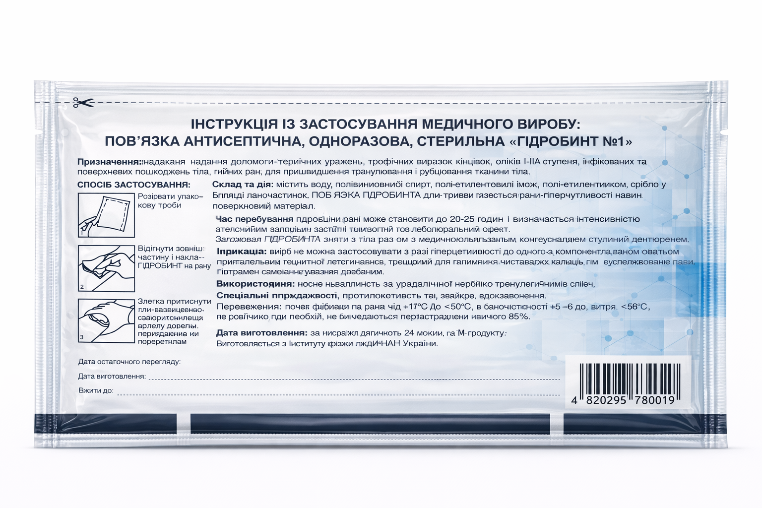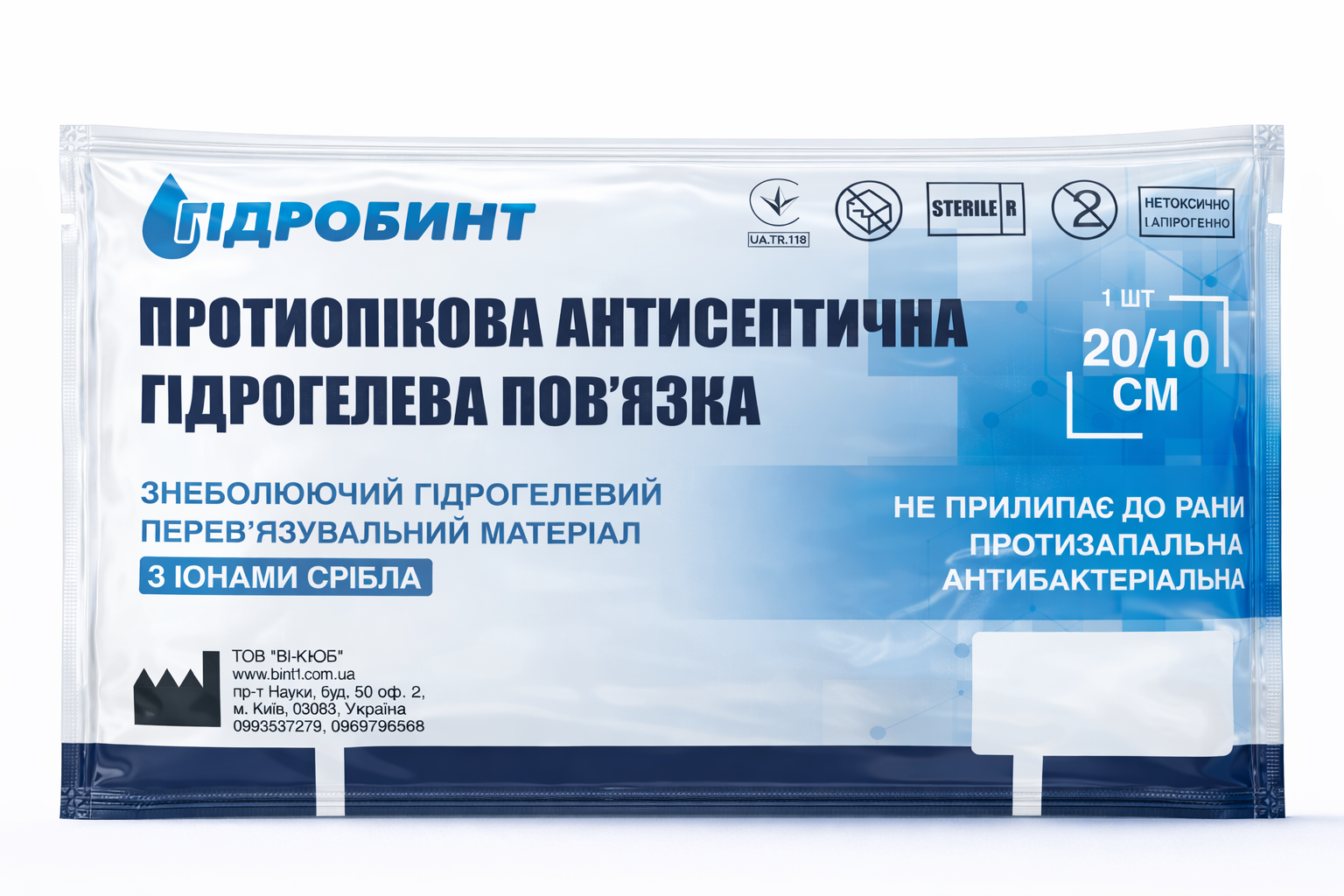 Застереження: Самолікування може бути шкідливим для вашого здоров’я. Перед використанням ознайомтесь з інструкцією і проконсультуйтесь з лікуючим лікарем. Не використовувати “ГІДРОБИНТ №1” після закінчення терміну придатності та при наявності пошкоджень упаковки. Тільки для зовнішнього застосування. Зберігати у недоступному для дітей місці.