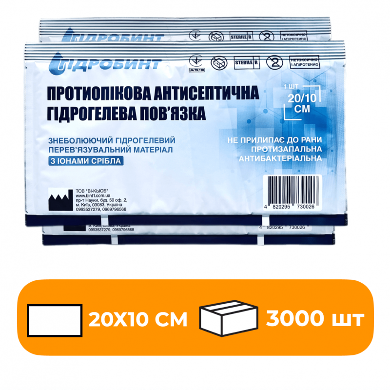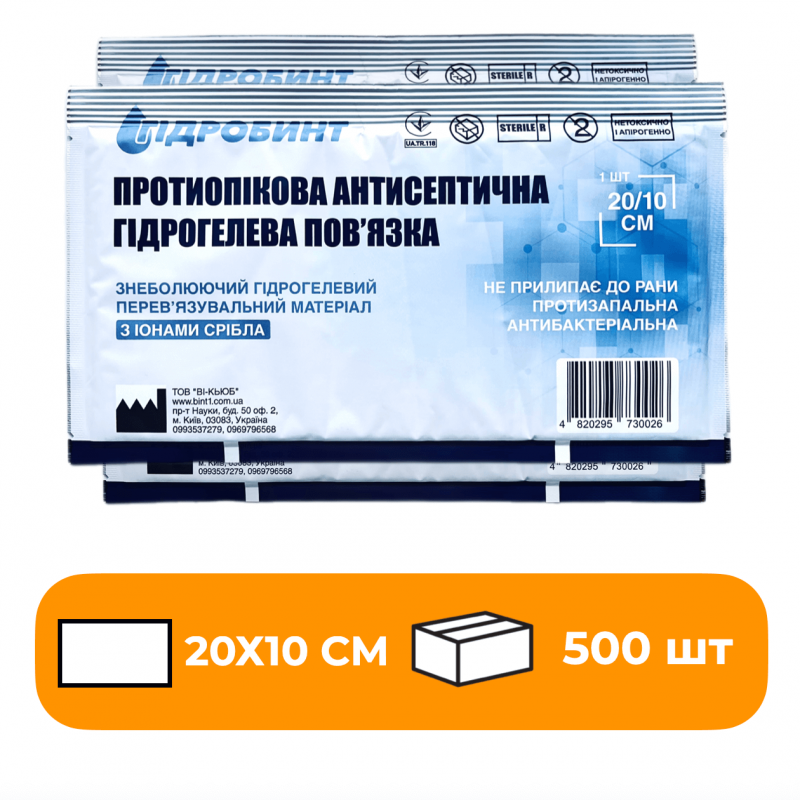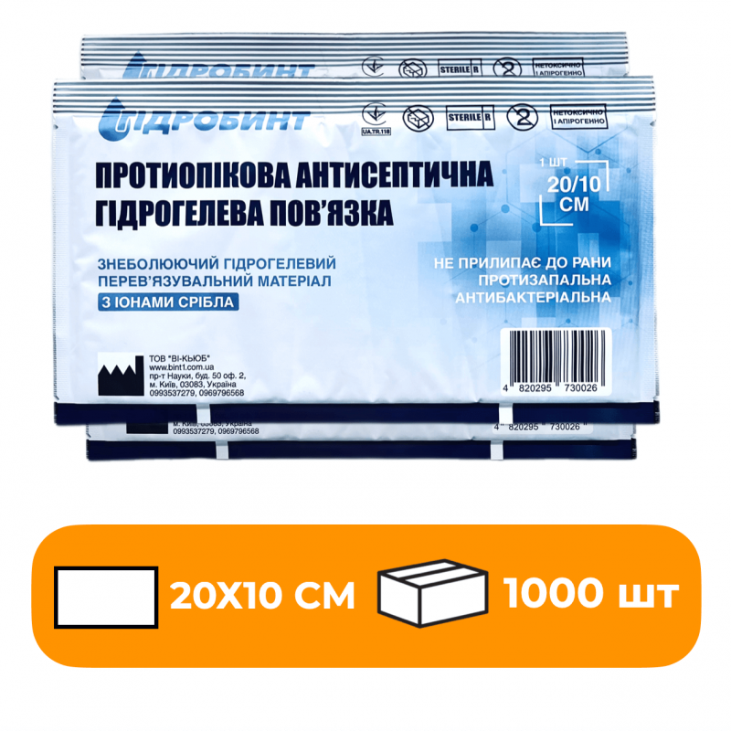 Пов’язка антисептична, одноразова, стерильна “Гідробинт № 1» 20х10 см.